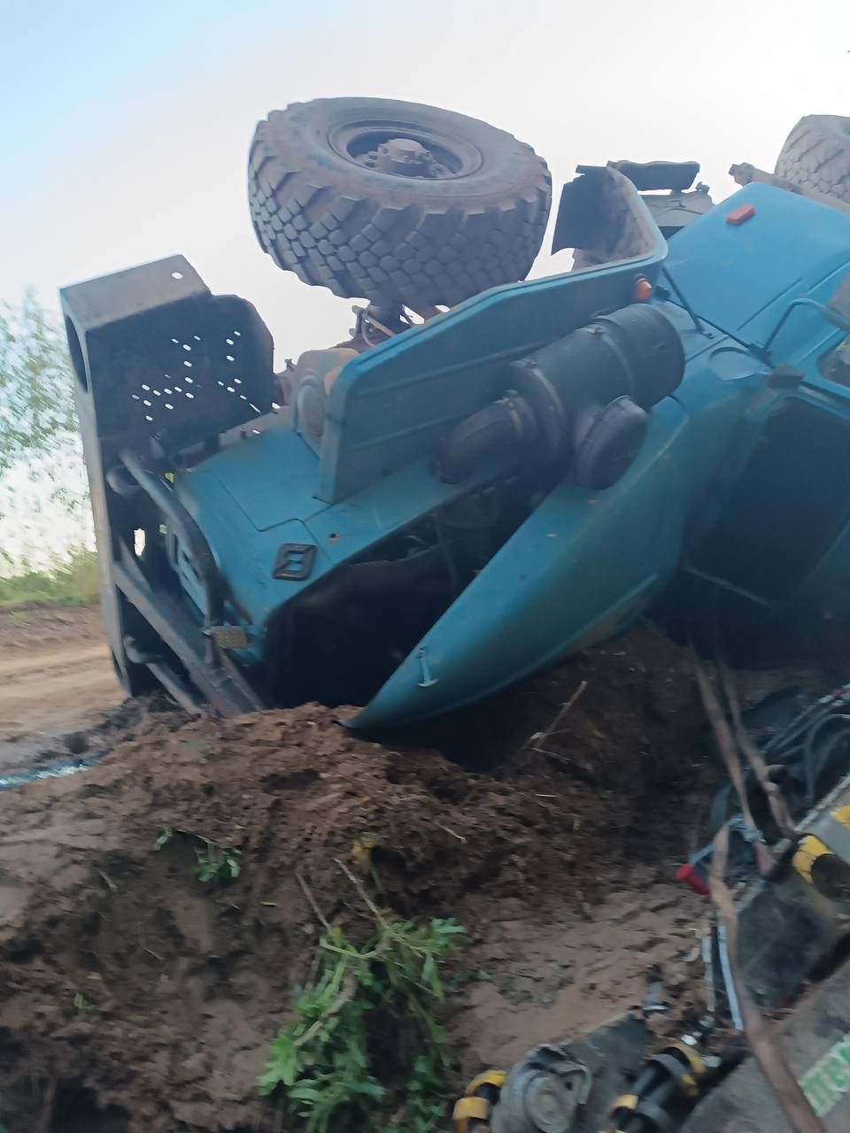 Мужчина управлял автомобилем УРАЛ, не справился с управлением и перевернулся. Водитель травмирован.