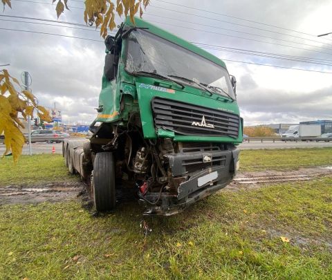 Так, в 10:55 на улице Дзержинского областного центра столкнулись «Ман» с полуприцепом под управлением 61-летнего мужчины и «Маз» под управлением 55-летнего мужчины. После удара «Маз» врезался в дорожное ограждение и дорожный знак.