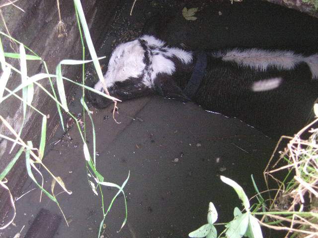 Теленок провалился в старый колодец глубиной 2,5 метра.