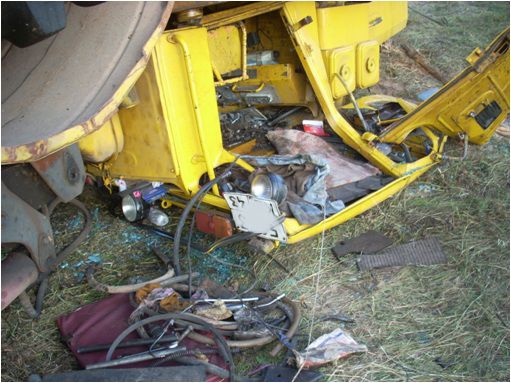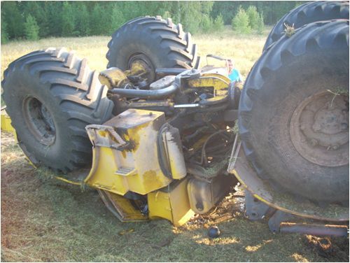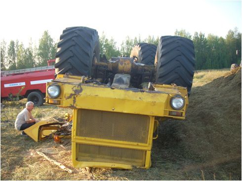 Трактор перевернулся и получил серьезные повреждения.