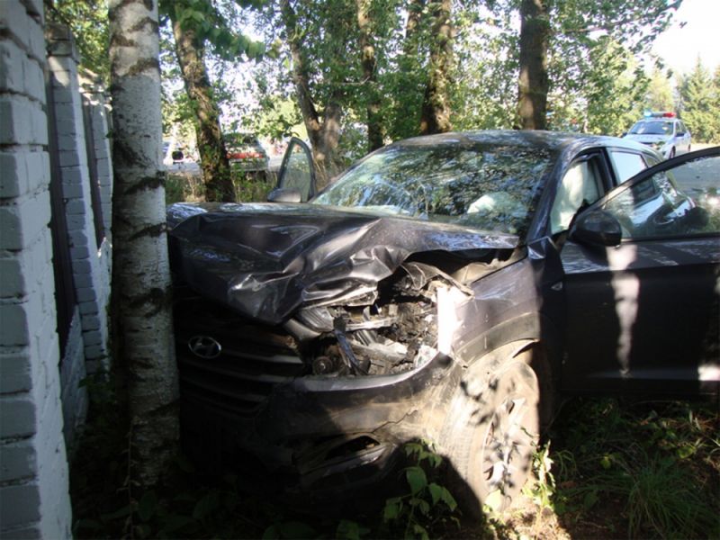 "Hyundai Tucson" вылетел в кювет и врезался в бетонный забор.