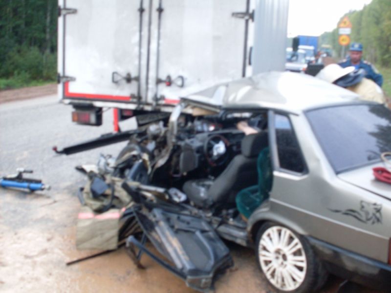 ДТП произошло около 17 часов 23.06.2018 года. На 280-м километре автодороги "Вятка" автомобиль ВАЗ-21099 врезался в грузовой фургон "Isuzu".