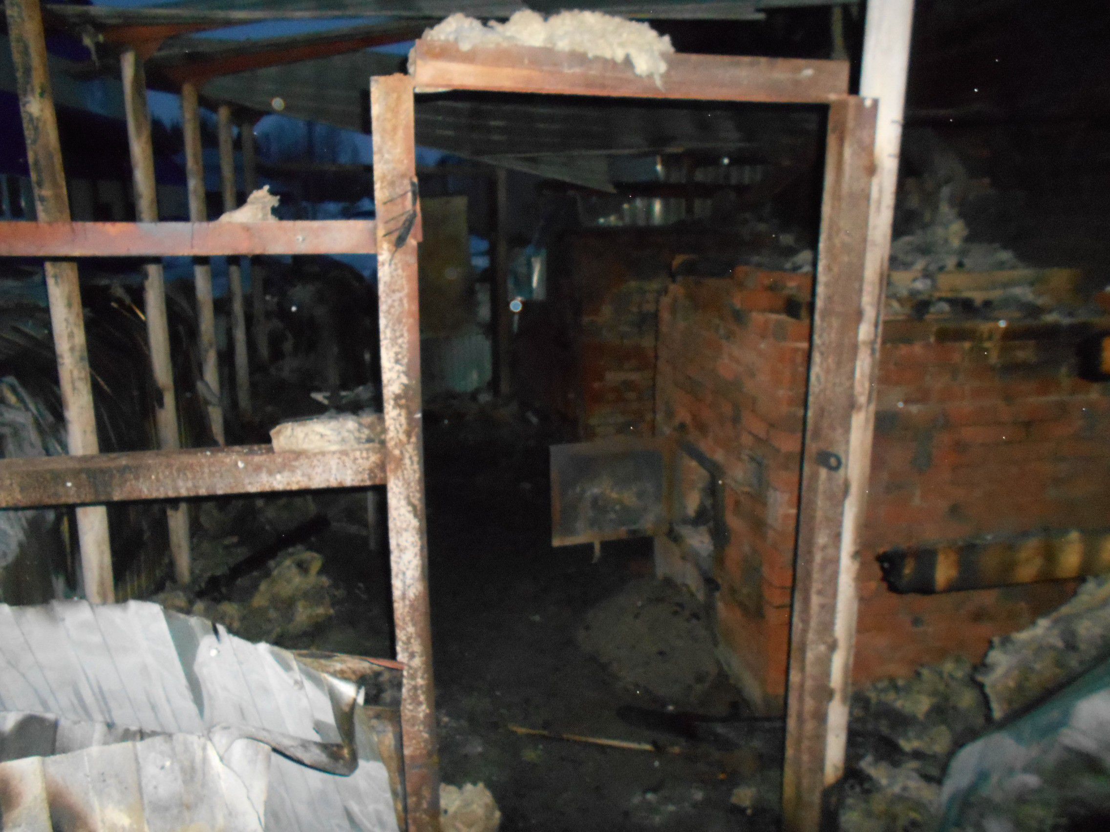 Внутри котельной полностью выгорела деревянная обрешетка стен и потолка.