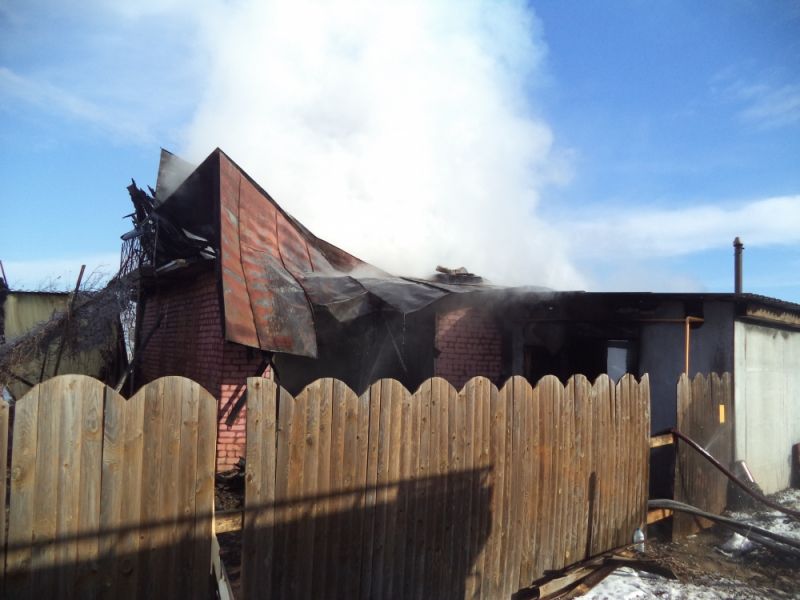 В результате пожара сгорели кровля дома, мансардный этаж, хоз. постройка и имущество.