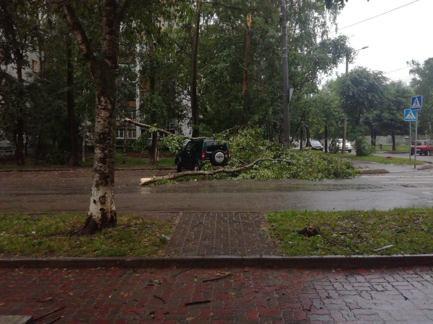 Самая непростая ситуация сложилась на территории от Старого моста в сторону Макарьевского кладбища. Здесь больше всего упавших деревьев, и сюда были направлены бригады городского управления гражданской защиты, Дирекции зеленого хозяйства и «Гордормостстроя».