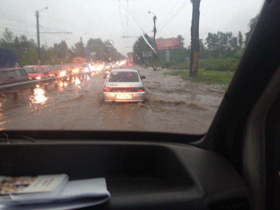 Вечер многие горожане провели в пробках и огромных лужах.
