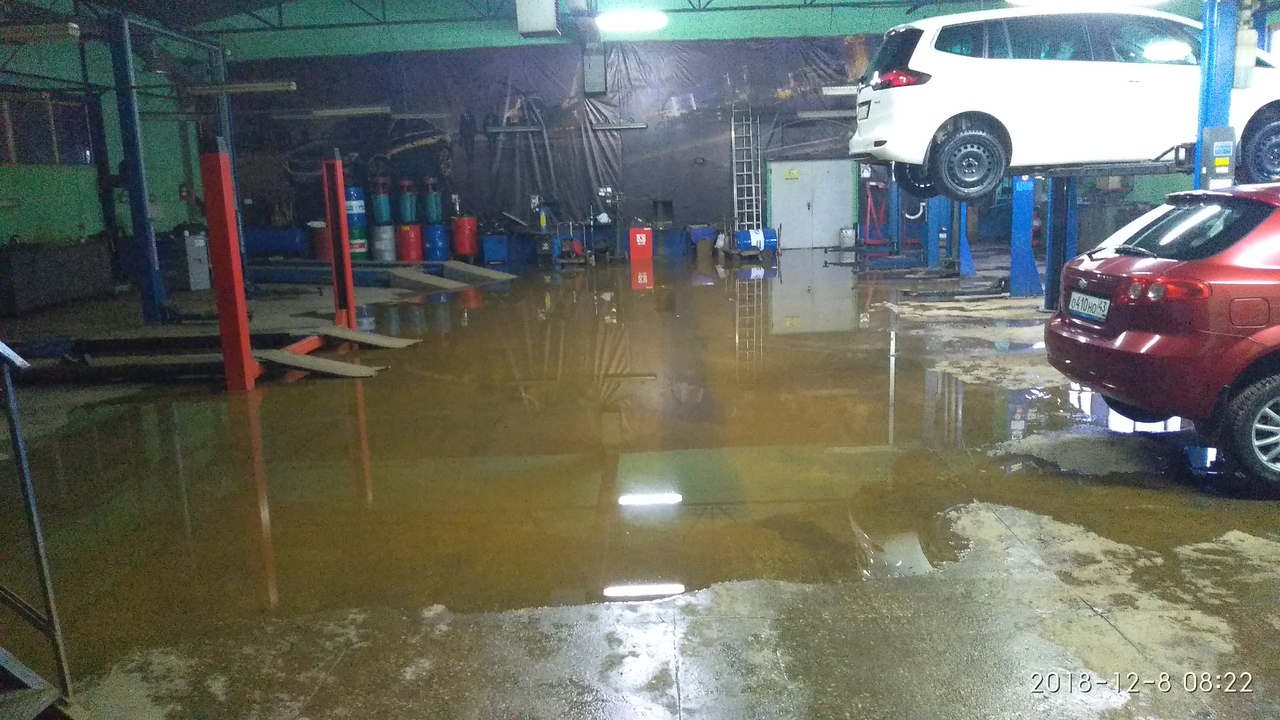 И в субботу произошел потоп в автосервисе на улице Менделеева.