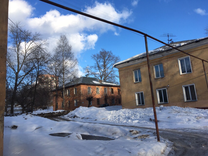 С крыши жилого дома сошла снежная масса. Во время схода "лавины" был поврежден провод, проведенный над дорогой.