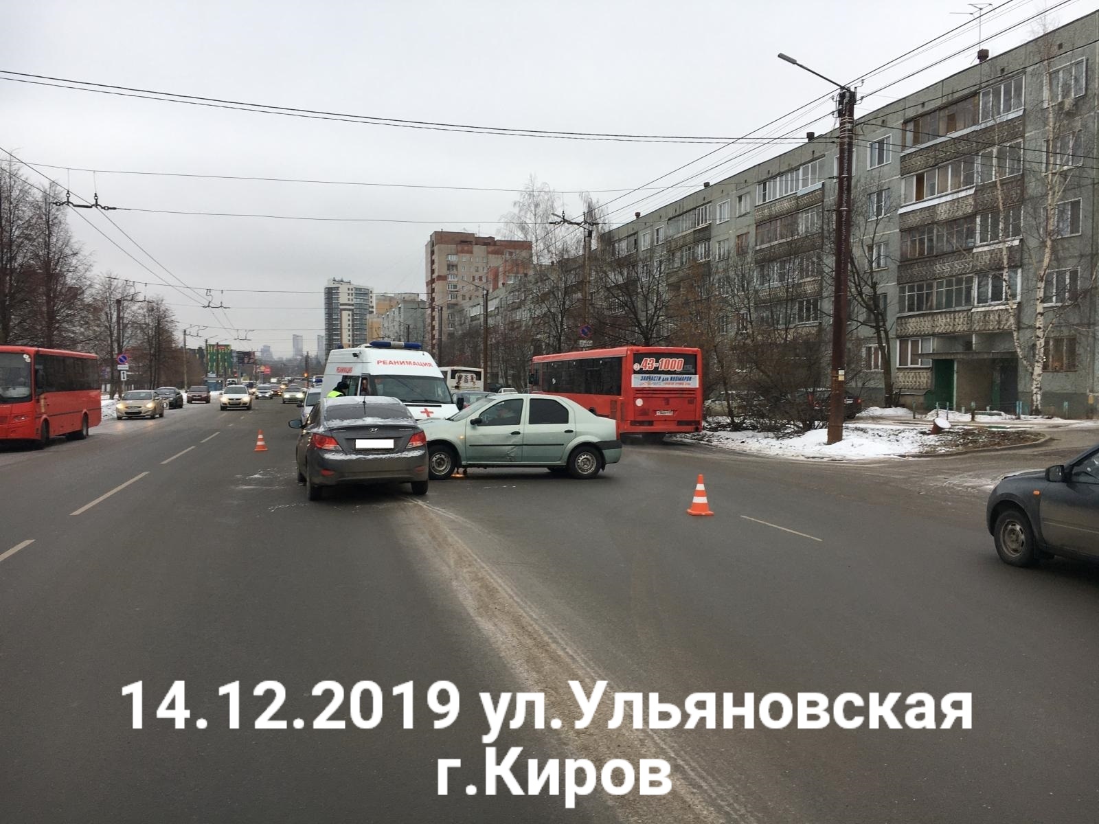 В тот же день на ул. Ульяновской, 22/1, произошло столкновение автомобилей «Рено Логан» и «Хендэ Солярис». В результате происшествия 8-летняя девочка-пассажир автомобиля «Хендэ Солярис» получила травмы (не госпитализирована).