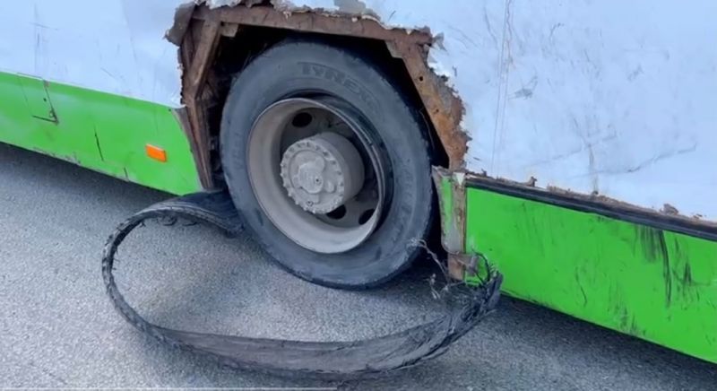 В четверг, 2 июня, в 10 часов утра на ул. Трактовой в поселке Гнусино произошло дорожное происшествие. По информации сотрудников ГИБДД во время движения у ЛИАЗа разорвалось заднее левое колесо.