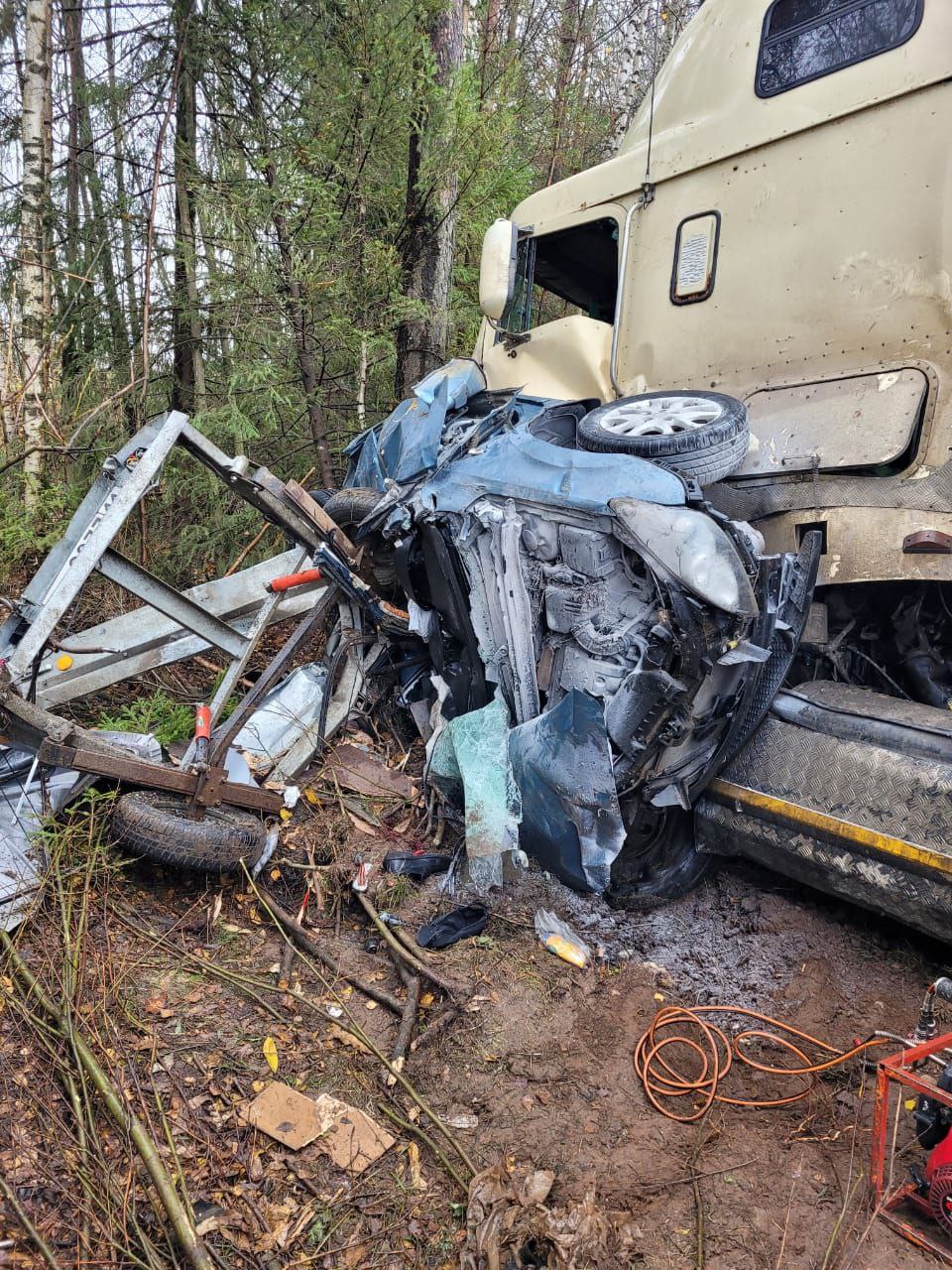 Сегодня, 14 октября, в 8:50 на 406 км федеральной трассы «Вятка» произошло столкновение «Хендай» и грузовика «ДАФ» с прицепом.По предварительным данным автоинспекторов, машины следовали во встречном направлении.