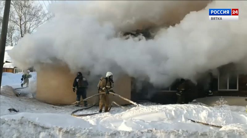 На месте происшествия работали шесть пожарных расчетов.В течение часа пожар удалось локализовать на площади 60 квадратных метров. По предварительной информации, пострадали два человека.