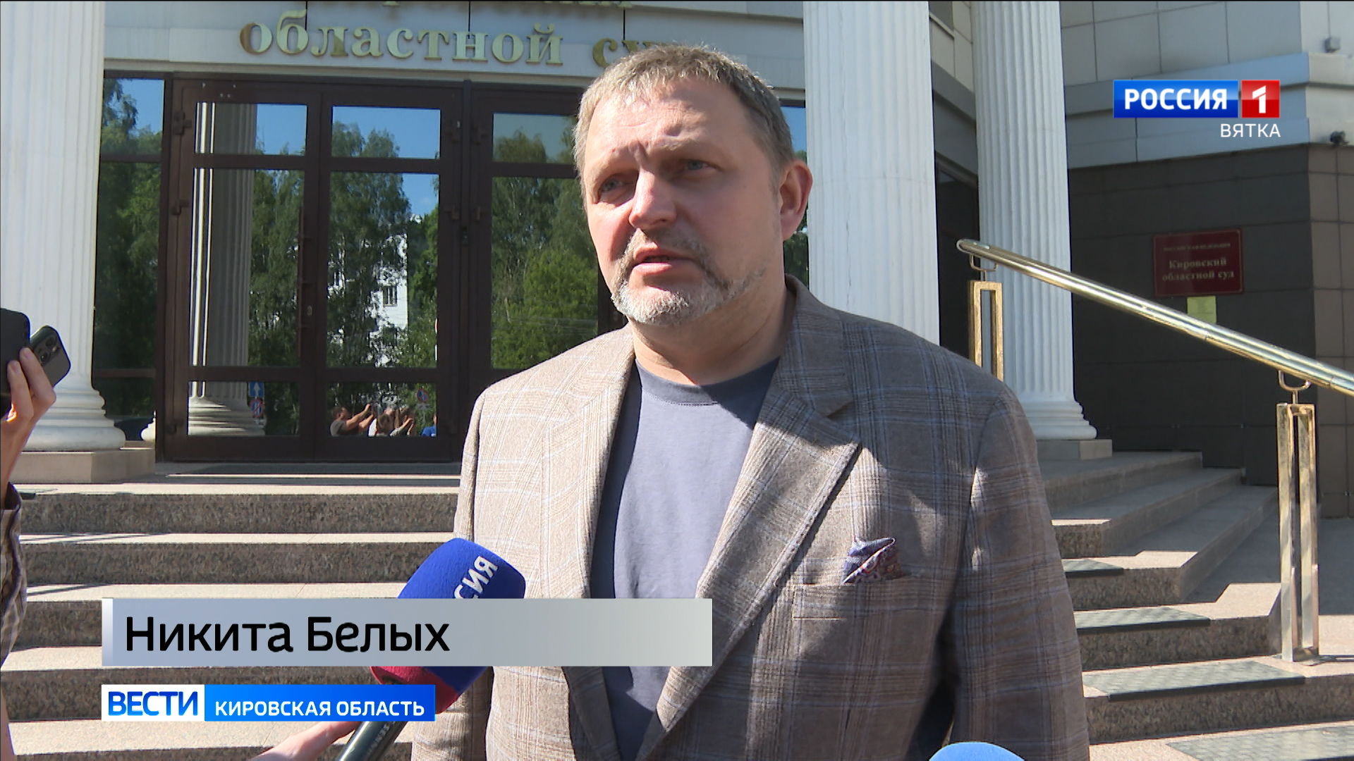 Рассмотрение апелляционной жалобы на приговор Октябрьского районного суда в отношении бывшего губернатора Кировской области Никиты Белых откладывали дважды. Перенесенное на 8 июля заседание состоялось. Никита Белых прибыл в Кировский областной суд в сопровождении двух адвокатов.