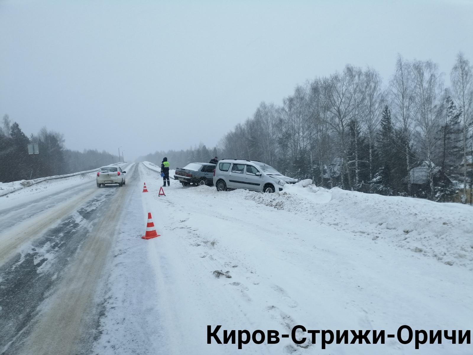 На 15 километре автодороги Киров-Стрижи-Оричи, по предварительным данным, 46-летний водитель автомобиля «ВАЗ-2115» не справился с управлением, совершил наезд на дорожное ограждение и столкнулся со встречным автомобилем «Лада-Ларгус».