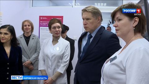 Министра здравоохранения знакомят с работой Кировского клинико-диагностического центра. Это крупнейшее в области амбулаторно-поликлиническое учреждение. К нему относятся 200 тысяч человек, это почти 40% жителей Кирова. Пристальное внимание уделяется профилактике заболеваний.