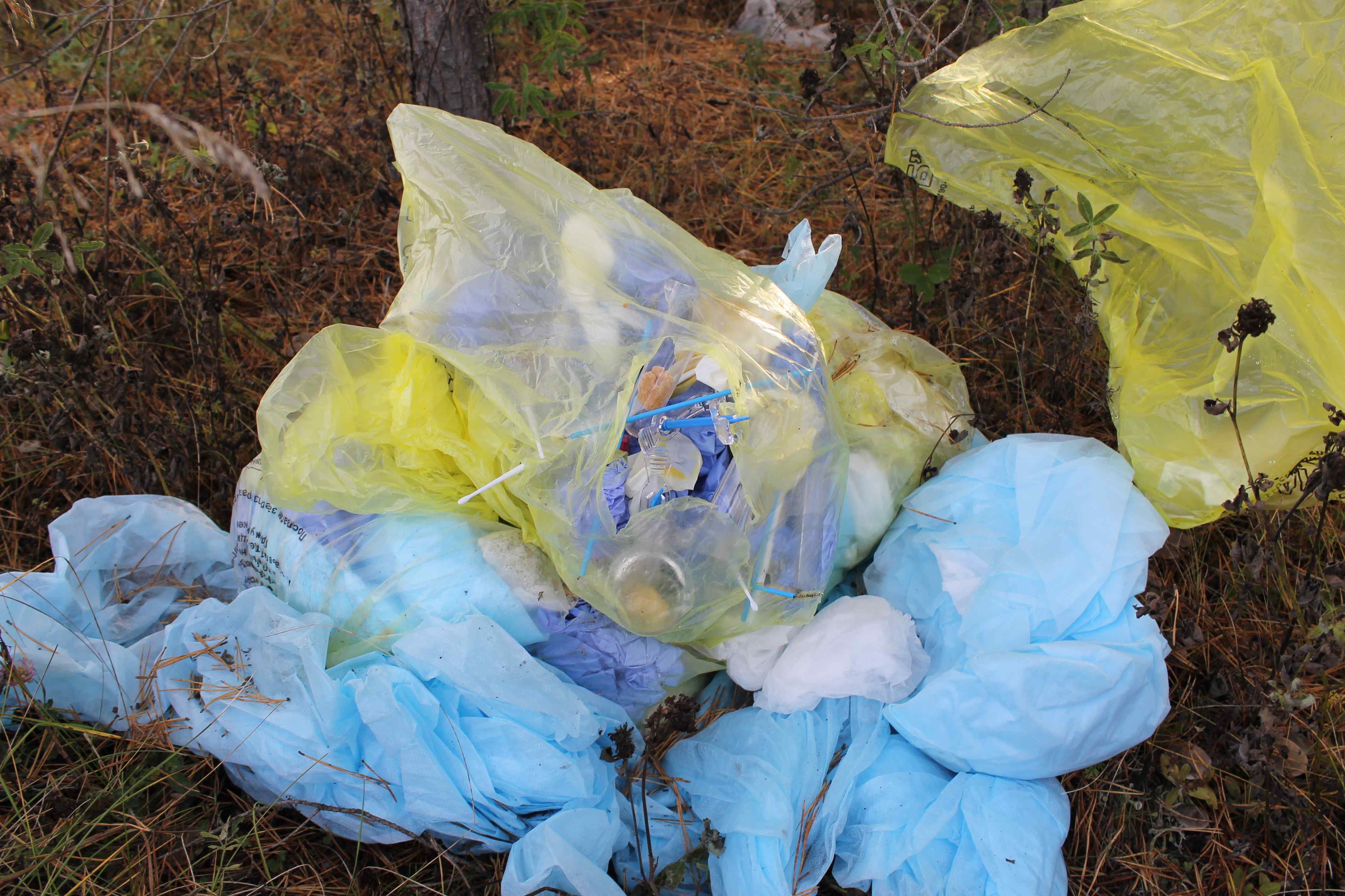 В большом пакете с надписью «Медицинские отходы класса «Б» находились медицинские расходные материалы для взятия анализов, медицинские одноразовые пеленки, а также перчатки и шприцы.