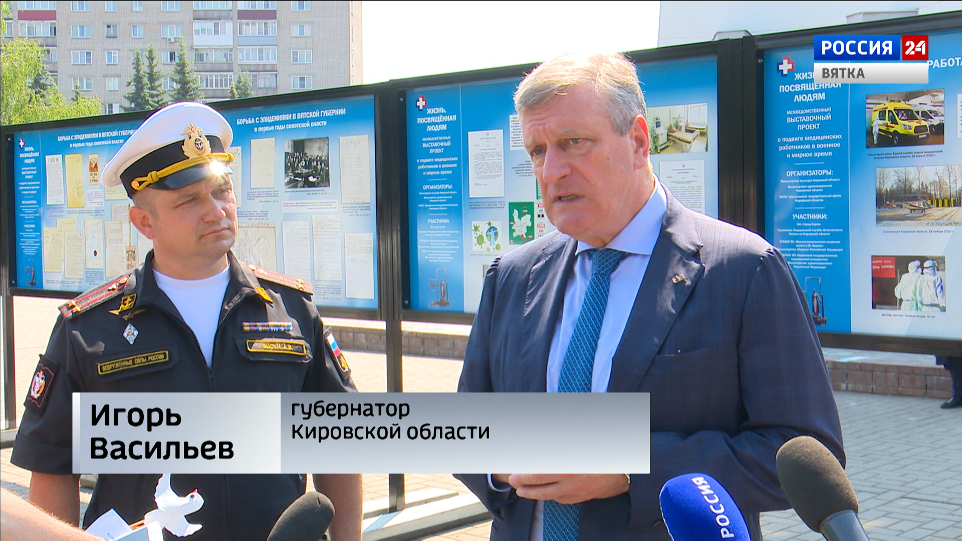 В 1941 году в Киров эвакуировали Военно-морскую медицинскую академию. На выставке ей посвящен целый раздел, где представлены уникальные материалы об эвакуированных профессорах и врачах из Ленинграда. Люди науки - именно они помогали лечить раненых солдат, оказывали консультацию в сложных случаях и обучали курсантов-медиков. Кроме того, благодаря ленинградцам в военные годы удалось предотвратить эпидемию тифа. Впрочем, история эвакуации академии в Киров была трагичной. На открытии выставки об этом рассказал гость из Северной столицы, начальник факультета подготовки врачей Военно-медицинской академии имени Кирова Антон Фисун.