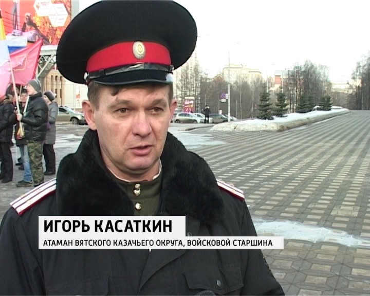 "Россия своих не сдает". Такие транспаранты для участников пикета не просто лозунги, а вполне конкретные шаги. Только на днях делегация вятского казачества отправилась на Крымский полуостров для поддержания порядка. Сколько конкретно казаков будет защищать крымчан информация закрытая, но от кого - известно точно.