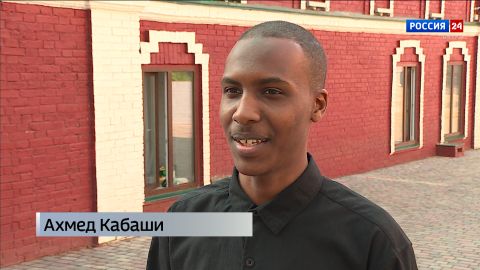 Сафиддим Элькашеф из Египта пришел на праздник в йеменском национальном костюме. На поясе он носит джамбию - йеменский изогнутый клинок. В данном случае клинок сувенирный, это не холодное оружие, иначе бы молодой человек просто не прошел досмотр на металлоискателе. Джамбия - символ дружбы и единения арабских народов.