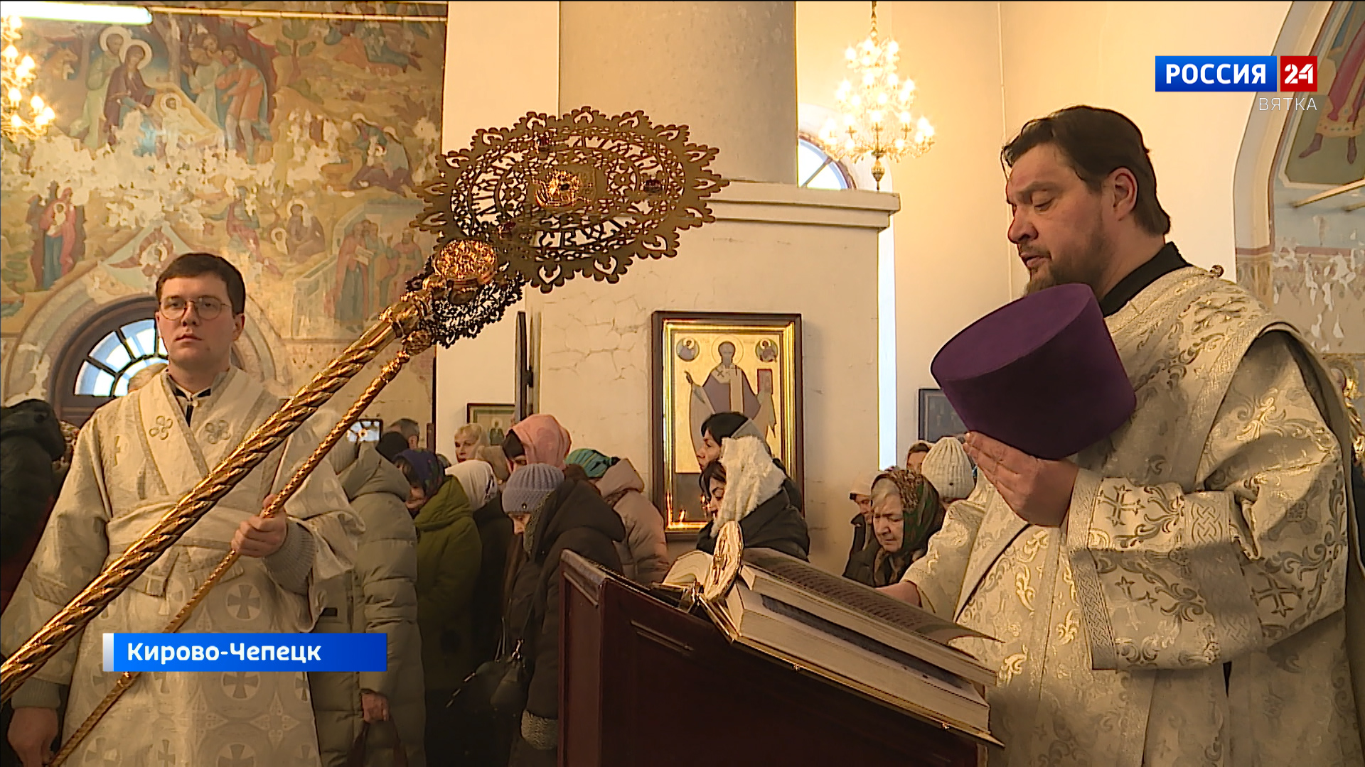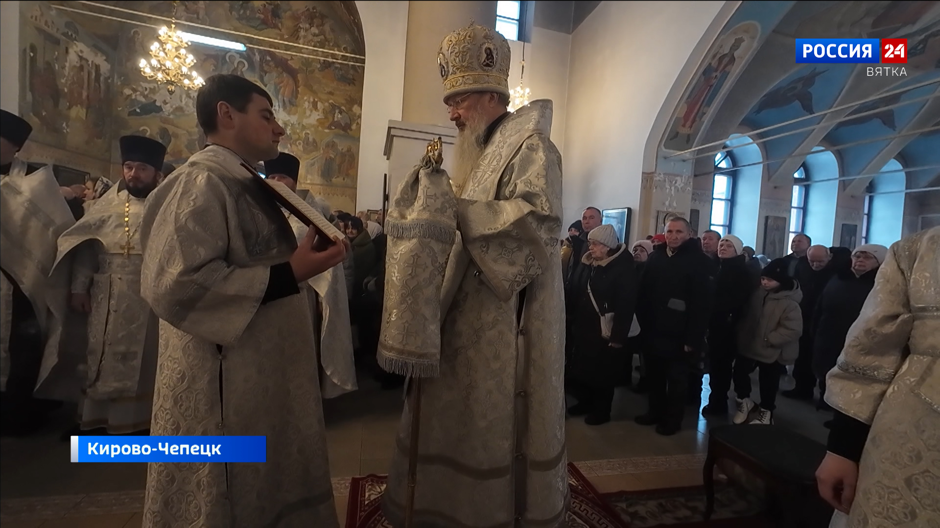 Православные отмечают праздник Крещения Господня. Накануне литургию во Всесвятском соборе Кирово-Чепецка возглавил митрополит Вятский и Слободской Марк. После службы верующие отправились крестным ходом к реке Вятке, где священники совершили чин освящения воды. Подробности в репортаже Ивана Швецова.