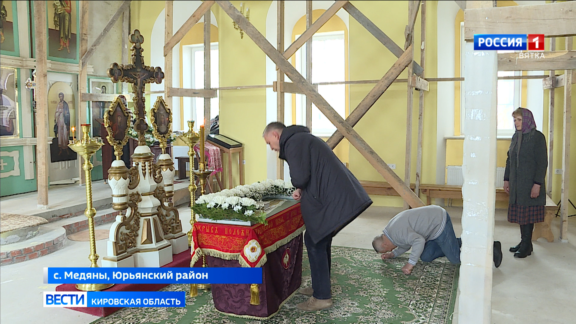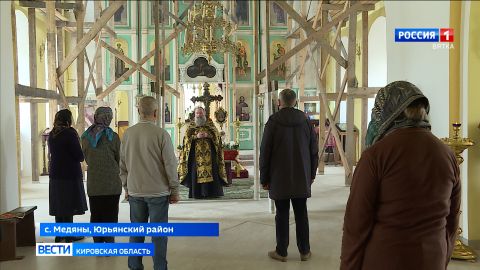 Впервые за 89 лет жители села Медяны готовятся встретить Пасху в родном Троицком храме. Хотя до полного восстановления церкви еще далеко, здесь уже проходят регулярные богослужения. В Страстную пятницу, в день, когда Церковь вспоминает распятие и смерть Иисуса Христа, верующие увидели "Вынос плащаницы". Репортаж Ивана Швецова.