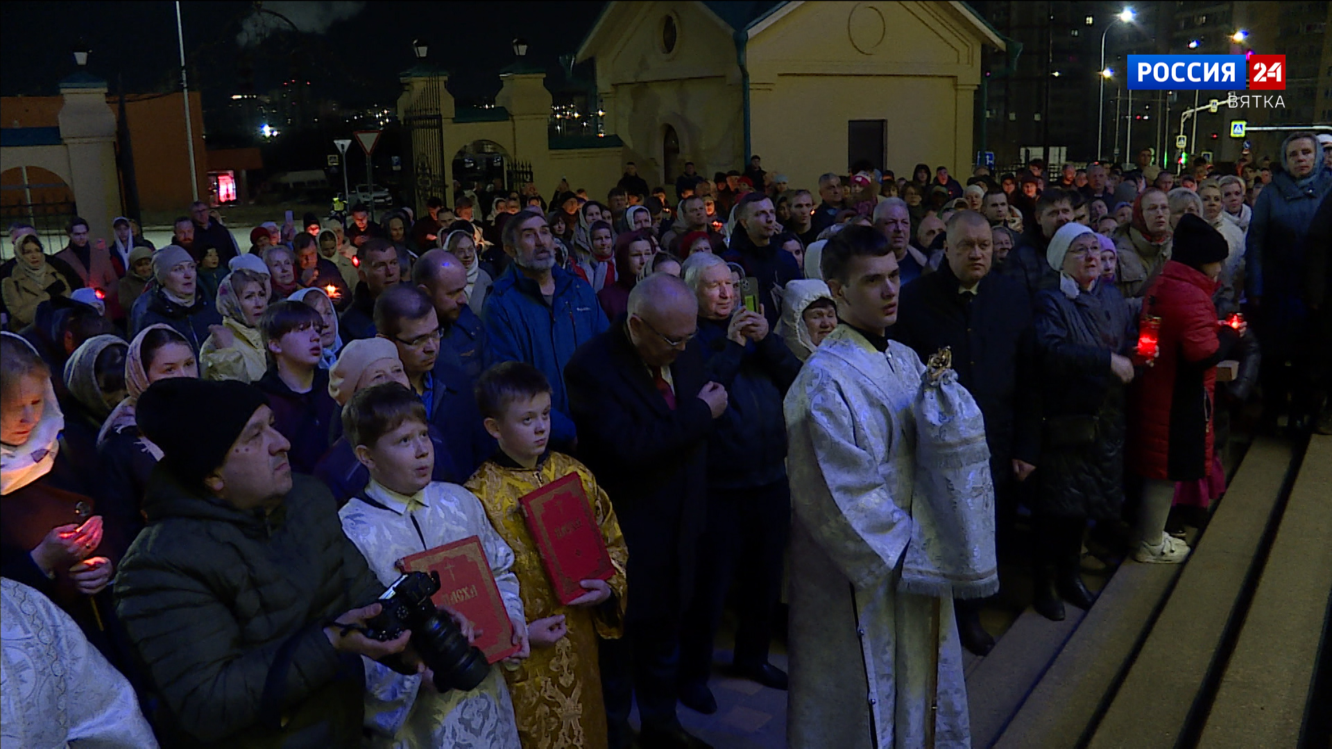 В Кирове главные торжества прошли в храме Рождества Пресвятой Богородицы. Богослужения возглавил митрополит Вятский и Слободской Марк. Здесь собрались сотни прихожан. Желающих встретить Великий праздник оказалось так много, что не все смогли попасть внутрь. Здесь люди разного возраста, многие пришли семьями.