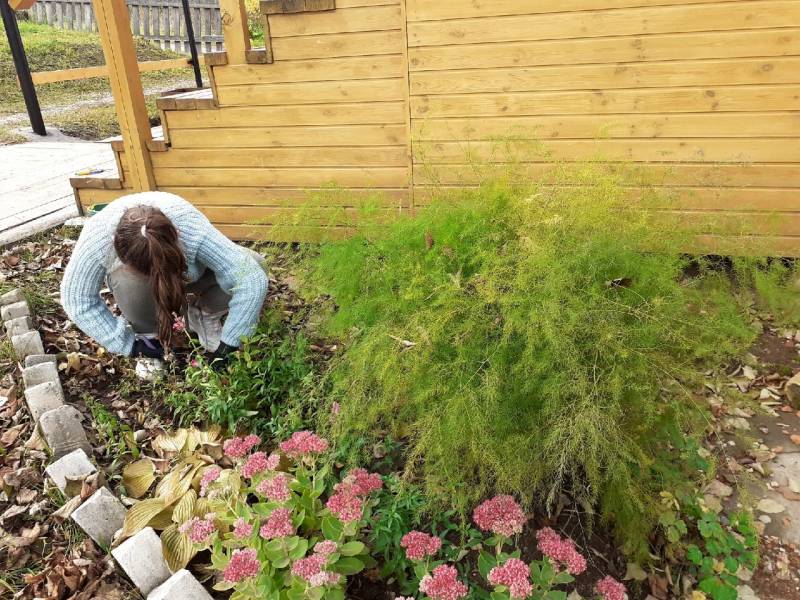 Благодаря школьникам из объединения «Юный цветовод» все лето территория вокруг церкви радовала прихожан разноцветьем клумб. И сейчас работа не останавливается, школьники готовят цветники к зиме.Фото: vk.com/verkhosh_hram