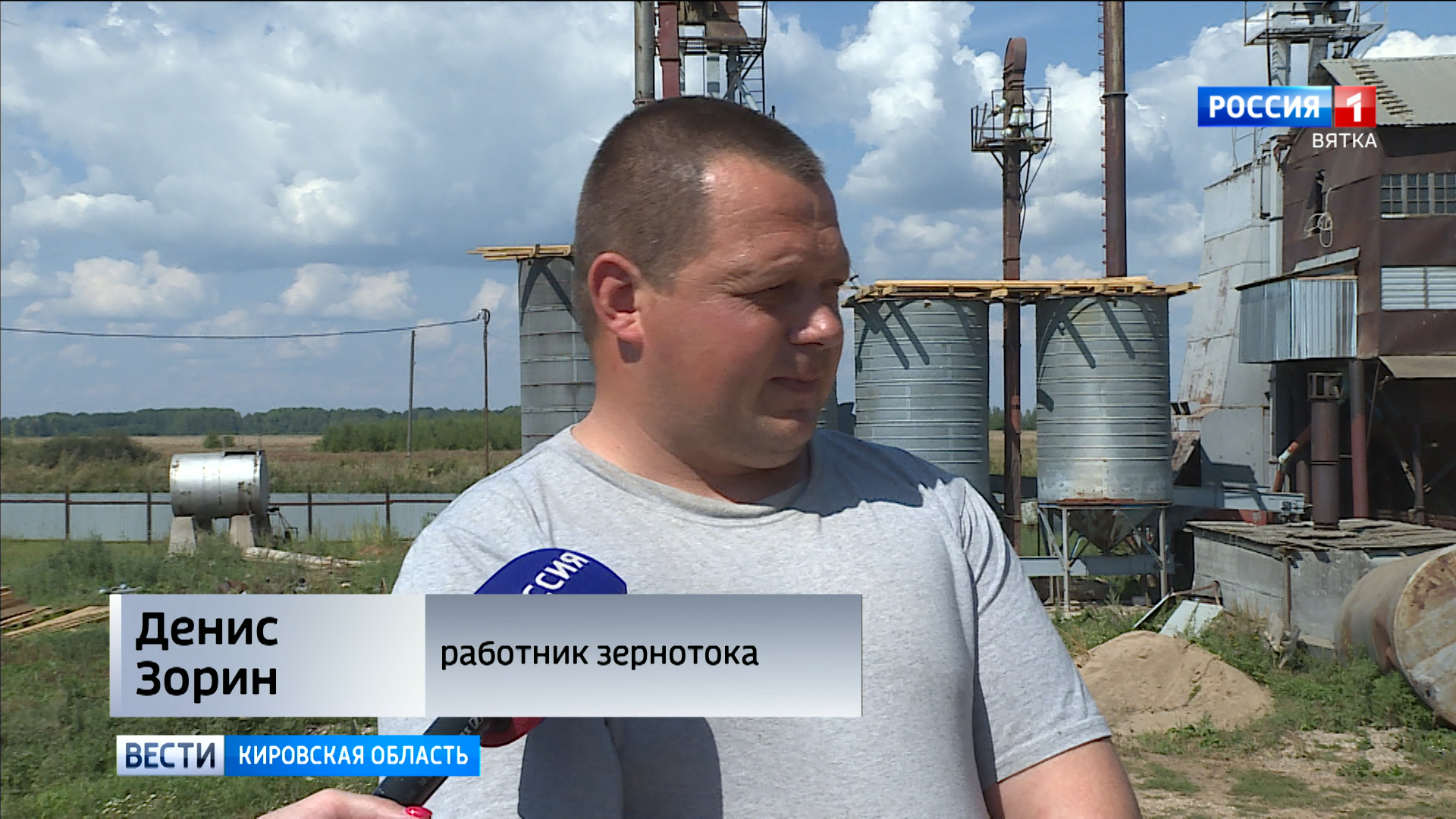 ДЕНИС ЗОРИН, РАБОТНИК ЗЕРНОТОКА:«Зерно поступает у нас в завальную яму, там потом оттуда уйдёт через норию в сортировку, отсортировываются крупные примеси - мусор, и после уже идёт через норию в сушилку».