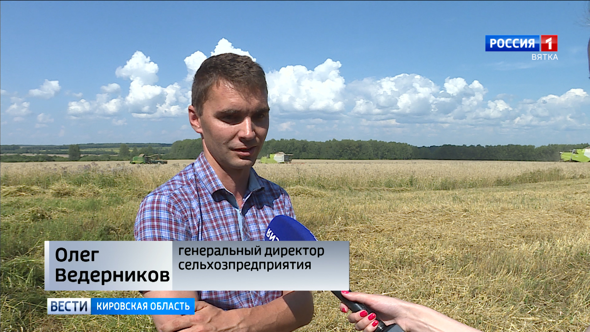 ОЛЕГ ВЕДЕРНИКОВ, ГЕНЕРАЛЬНЫЙ ДИРЕКТОР СЕЛЬХОЗПРЕДПРИЯТИЯ:«Начать первому в районе уборку - это не самое главное, самое главное - закончить уборку в оптимальные сроки, для этого мы и выехали, когда зерно достигло оптимальной влажности, ну и, в принципе, не прогадали, влажность зерна оптимальная - порядка 17%».