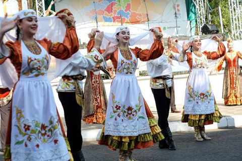 Гости представили традиционные татарские композиции и танцы, авторские обработки народных песен, популярные татарские мелодии 50-х – 70-х годов прошлого века, танец сельской молодежи и другие номера. Звездами дня на фестивальной площадке стали участники Государственного ансамбля песни и танца «Агидель».