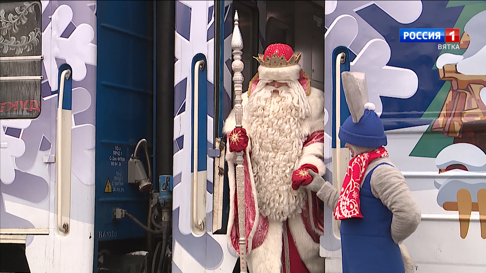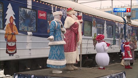 «Чтобы всё у всех, кто сегодня здесь присутствует, у всех, кто нас видит... И вы Дед Мороз, и вы снегурочка... Чтобы у всех у вас было хорошее здоровье, хорошее настроение... Ну, и ваш поезд уже стал традиционным. Традиционно встречаем его у нас уже не первый год. Спасибо, что вы приехали к нам в новогоднюю столицу России».