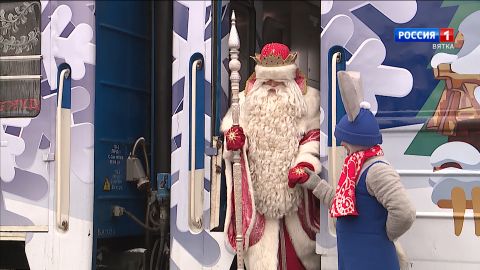 Сегодня Новогоднюю столицу России посетил главный Дед Мороз страны. В Кирове спецпоезд с большой командой героев народных сказок встречали сотни юных кировчан. С места событий - наш репортаж.