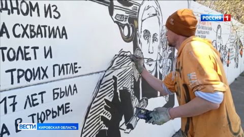 10 дней работы. 50 метров забора или 100 квадратных метров полотна для творчества. Праздничным город делают в эти дни и кировчане. На Ивана Попова 71 к 9 мая появилось граффити. 12 портретов героев Великой Отечественной. Авторы - известные художники братья Александр и Евгений Сесюковы.