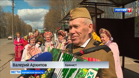 В праздничные дни городские автобусы в Кирове превратились в своеобразные машины времени. Вместо привычного маршрута — путешествие в прошлое, где звучат мелодии знакомые каждому сердцу: "Катюша", "Синий платочек", "Тёмная ночь". В Нововятске стартовала традиционная акция "Поющий автобус". На рейсах №46 и №87 с исполнением песен военных лет отправились три агитбригады местного Дома Культуры. Подробности в репортаже Ивана Швецова.