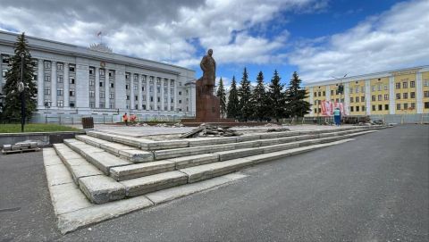 На Театральной площади началось благоустройство прилегающей к памятнику Ленина территории. Ремонт проводится в рамках федерального проекта «Формирование комфортной городской среды» нацпроекта «Инфраструктура для жизни».