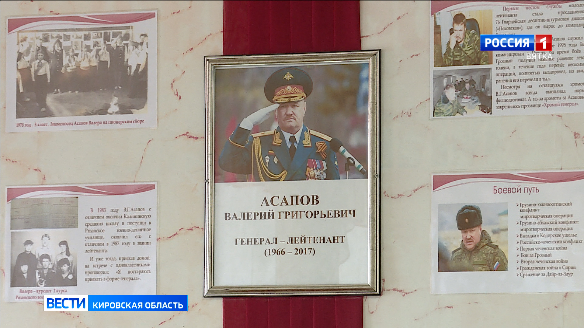 Кроме «парты героя» в школе также есть мемориальная доска в честь легендарного генерала Валерия Асапова. Она была установлена раньше, и сегодня после открытия парты ребята провели экскурсию и узнали много нового об истории подвигов героев-земляков.