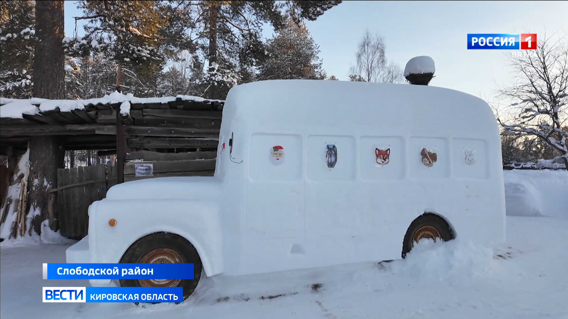 Это приближенная к оригиналу снежная копия советского автобуса на базе ГАЗ-53. Александр Владимиров решил припарковать его у дома не случайно. Навеяли воспоминания о детстве и желание вновь сделать что-то необычное в любимое время года.