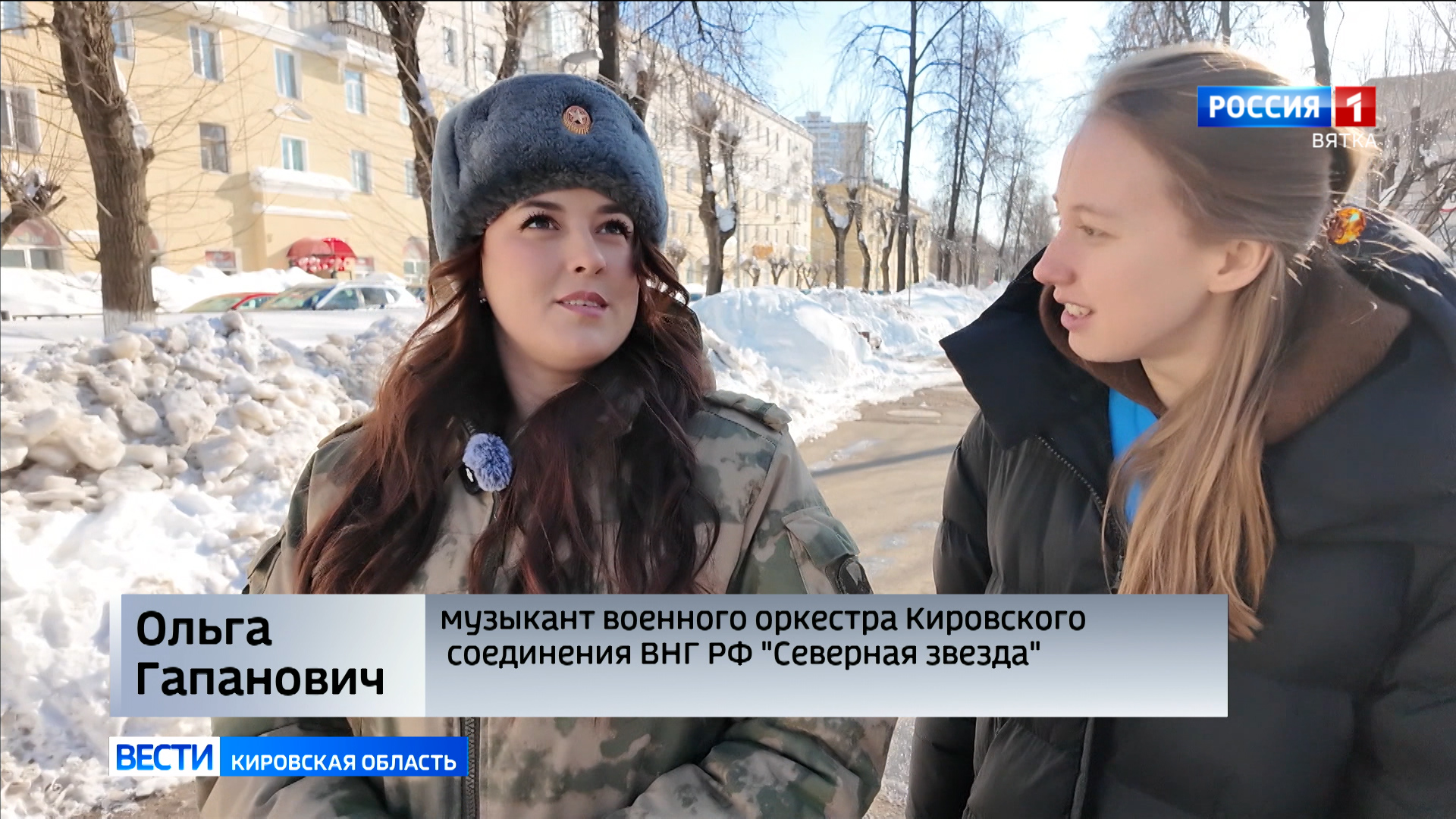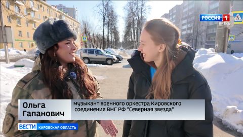 На службе наравне со всеми. Современные девушки часто выбирают сложные и необычные профессии. Кировчанка Ольга Гапанович - музыкант военного оркестра Кировского соединения войск национальной гвардии России "Северная звезда". И в коллективе она — единственная представительница прекрасного пола. И помимо выступлений на концертах, несет службу наравне с остальными музыкантами оркестра. Репортаж Карины Алоян.