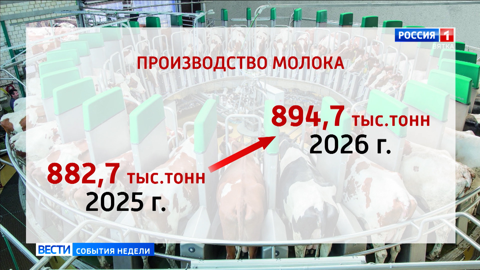 Кировская область продолжает занимать лидирующие позиции в России и ПФО по производству молока. Поставлена задача увеличить его почти до 900 тонн в 2026 году.