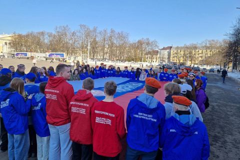 Так, на Театральной площади волонтёры провели акцию «Лента триколор». Добровольцы раздавали жителям и гостям города ленты в цветах государственного флага, рассказывая о значении государственной символики. Кроме того, состоялся флешмоб «Вместе с Крымом»: представители общественных организаций развернули флаг Российской Федерации.
