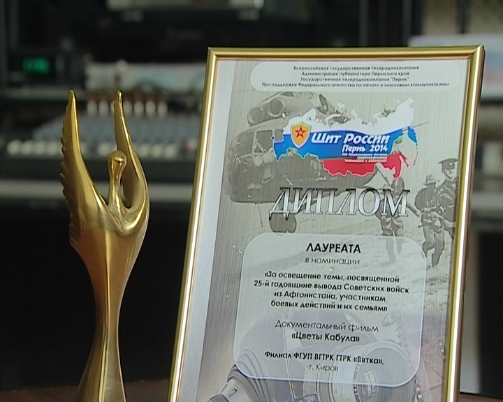 ГТРК Вятка уже не первый год участвует в фестивале "Щит России", а ее журналисты становятся обладателями дипломов и наград. В этом году члены жюри высоко оценили документальный фильм "Цветы Кабула" и репортерский талант журналиста Миланы Поварнициной, режиссуру Алексея Фоминых, а также операторское мастерство Вячеслава Голикова, пронзительную музыкальную нотку звукорежиссера Владимира Коробейникова. Сегодня в багаже телекомпании на еще одну статуэтку стало больше.