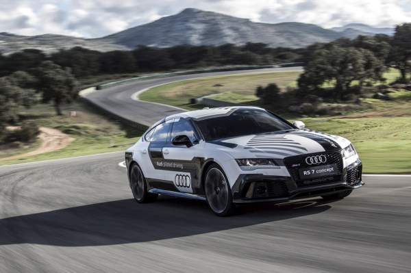 До этого RS7 проехал круг по трассе "Хокенхаймринг" чуть более, чем за две минуты, при этом скорость автомобиля достигала 240 км/ч. В концепт-каре устанолвен четырехлитровый V8 с отдачей в 560 лошадиных сил и крутящим моментов 700 ньютон-метров. Заявленная максимальная скорость машины 320 км/ч. В январе 2015 года на выставке электроники в Лас-Вегасе Audi планирует показать полностью автономную систему автоматического управления. Audi давно занимается разработкой беспилотных автомобилей. В 2011 году соответствующим образом модифицированное спорткупе TTS за 27 минут преодолело гоночную трассу к вершине горы Пайк Пик в штате Колорадо.