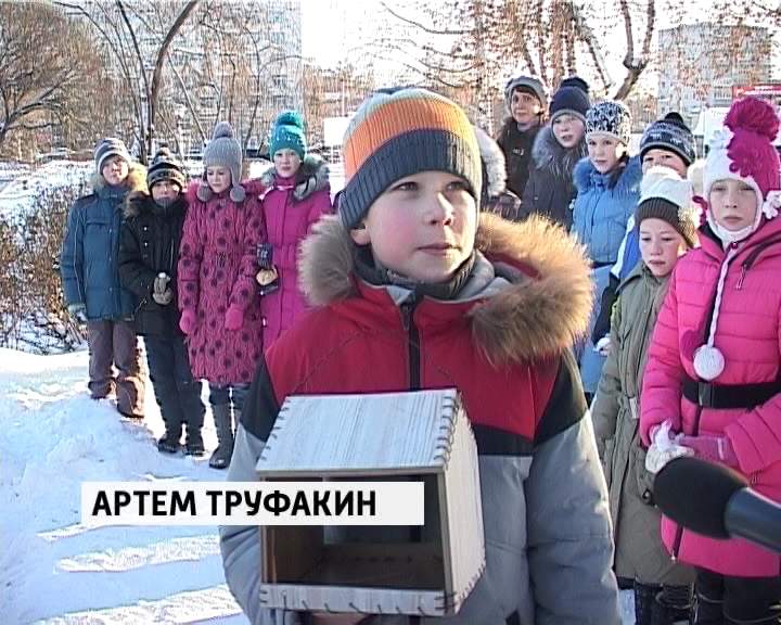 Дети, в свою очередь, принесли свои самодельные кормушки, чтобы повесить их на ветвях деревьев в аллее парка.