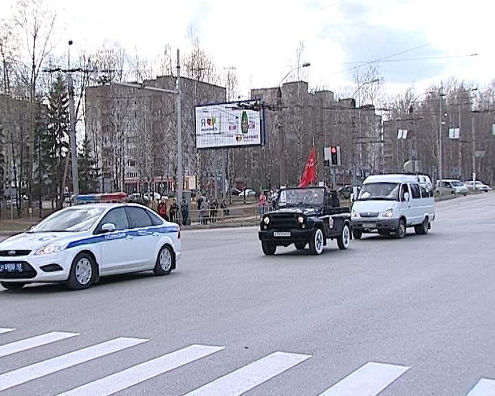 По Московской, от перекрестка с Ломоносова и до Театральной площади, Знамя Победы провезли в открытом автомобиле. А завершилась эстафета у Вечного Огня, откуда Знамя Победы отправилось в Слободской.