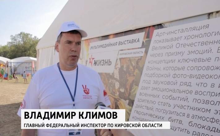 К этому моменту ребята узнали главную новость дня: по результатам общего голосования участников форума в топ-3 проектов ПФО, которые будут презентованы полпреду президента Михаилу Бабичу, попал один из проектов кировчан. Мультимедийная выставка «Жизнь», посвященная Великой Отечественной войне, впечатлила не только участников Форума, но и его гостей. В случае победы кировский проект увидят во всех регионах ПФО. Для Владимира Климова ребята устроили спец-экскурсию по выставке. После он поделился впечатлениями от всего увиденного на форуме.