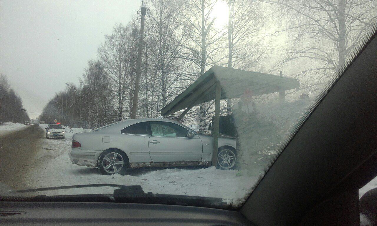 Водитель «Мерседеса» врезался в остановочный павильон, где находились люди, ожидавшие автобус.