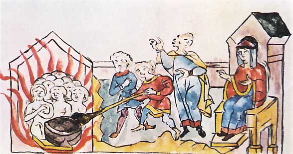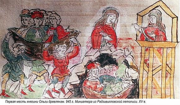 У могилы Игоря велела она насыпать большой курган, а древлянам наказала принести медов побольше. По обычаю, у могилы устроили военные игрища. После них отроки княгини пили с древлянами до беспамятства. Когда те заснули, подошла дружина киевская и порезала всех. Число их, как гласит летопись, было около 5000. Но и этого оказалось мало княгине.