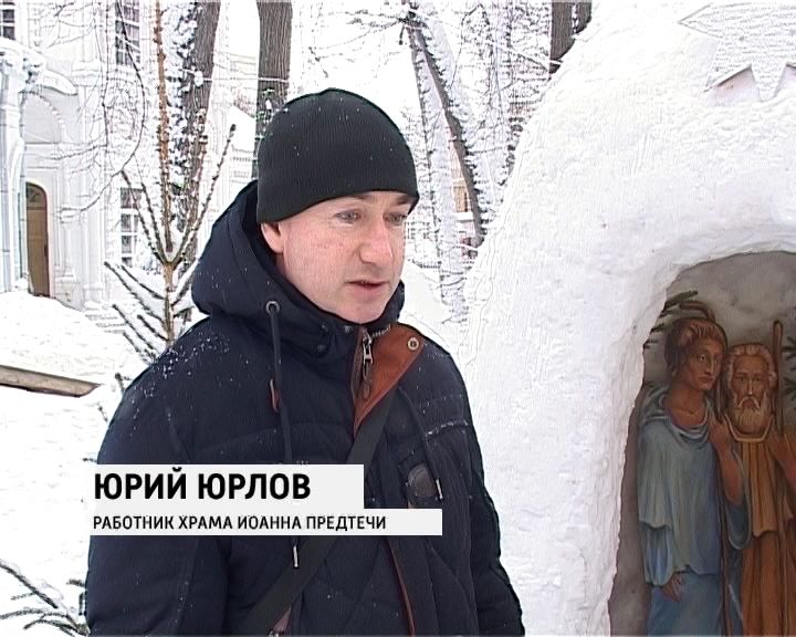 Саму конструкцию вертепа начали сооружать еще в декабре. Работники монастыря сколотили из досок каркас, засыпали его снегом. После украсили еловыми ветками и шариками.