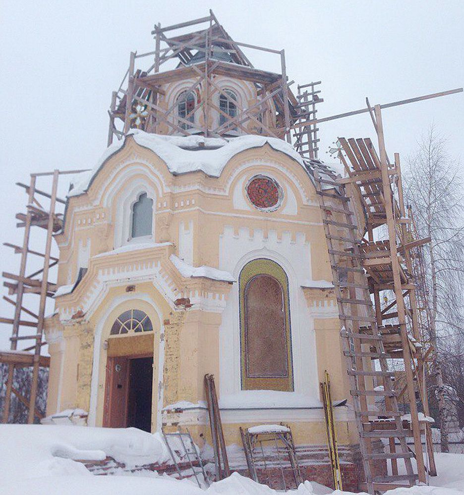 В 1995 году одну из фасадных граней украсило мозаичное изображение святого Александра Невского, а другую в 1997 году - святого Макария Унженского. Активные восстановительные работы в часовне начались год назад.