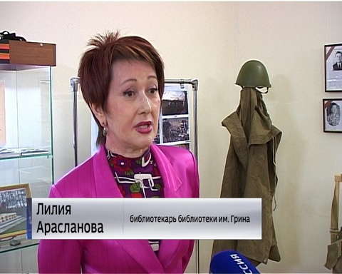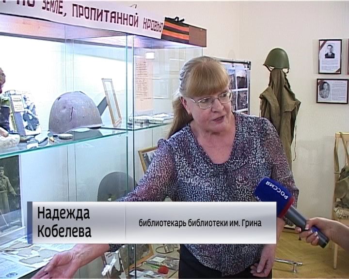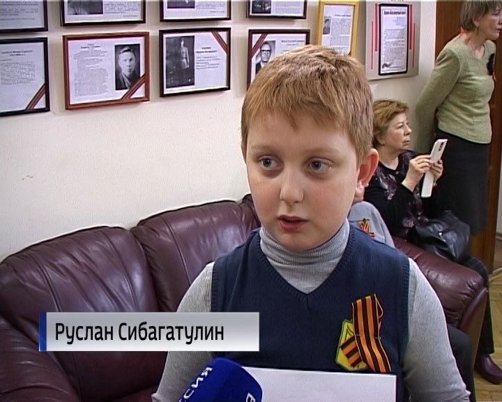 На стенах - портреты участников Великой Отечественной войны и тружеников тыла. Юные читатели и сотрудники библиотеки имени Грина приносили фотографии и рассказы о своих родственниках. Руслан с гордостью рассказывает про своего деда-тыловика Владимира Скопина.